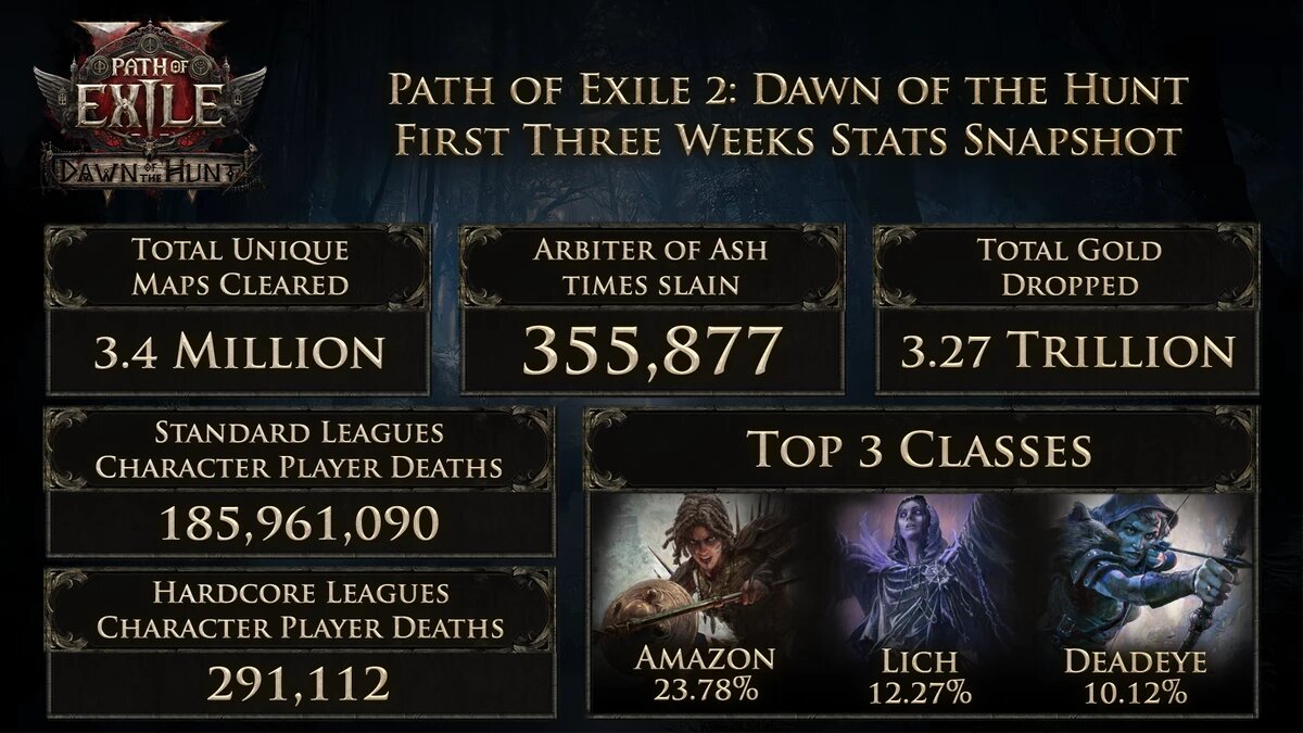 Игровая статистика Path of Exile 2: Dawn of the Hunt за прошедшее с релиза время