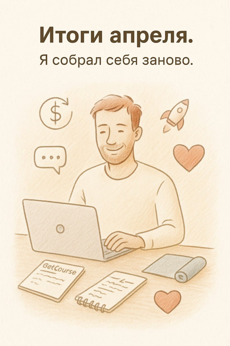 Итоги апреля. Кажется, я собрал себя заново. Месяц начался в состоянии, которое сложно назвать ресурсным — но всё равно, даже в нём, я продолжал двигаться. А к концу апреля почувствовал: я вернулся. Даже лучше — стал другим. Спокойнее. Сильнее. Увереннее. 🛠 Что сделал по работе: — Создал мини-курс «Чат-бот для ТехСпеца» — Провёл мини-запуск для клиента — Настроили кастомное автораспределение кураторов (решение получилось простым, хотя задача была с подвохом). Да, уже есть решение по распределению, но в проекте была вводная, которая не позволяла им воспользоваться, пришлось придумать еще одно решение:) 💸 Финансы: Подсчёты за месяц порадовали — удалось закрыть хорошую часть долга.Я даже сам удивился, когда в конце месяца сложил все переводы.Все же сила маленьких шагов работает. 🧠 Рост и обучение: — Прошел несколько сильных сессий и, наконец, сдвинулся там, где раньше топтался на месте — Вписался в программу с ИИ-коучем (это просто космос). Связка: живой специалист(мой) раз в недел
