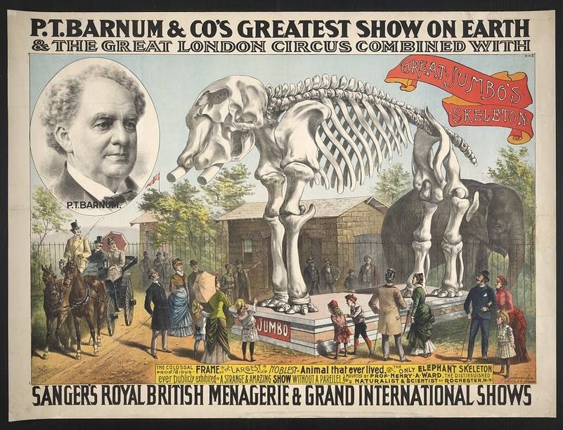 У нас есть что-нибудь для каждого. Финеас Тейлор Барнум, американский шоумен и основоположник рекламы. Продолжая неиссякаемую тему когнитивных искажений, поговорим сегодня о так называемом "эффекте Барнума" и, конечно, его последствиях в нашей рабочей практике 🤐 "Король надувательства". Финеас Барнум с младых ногтей тяготел к различным экспериментам, приносящим немедленную прибыль. В начале своей карьеры он неудачно занялся лотереей, затем открыл свою газету, которую пришлось закрыть после многочисленных исков о клевете и судебного процесса, который закончился для Барнума тюремным заключением. В 1835 году он предъявил народу некую Джойс Хет, утверждавшую, что ей 160 лет и она была няней самого Пушкина Джорджа Вашингтона — на этой легенде Барнуму удалось заработать приличные деньги. В 1830-х годах Барнум занимался газетным и шоу-бизнесом — он одним из первых оценил роль фотографии в рекламе и в 1853 году открыл в Нью-Йорке первое иллюстрированное печатное издание. "Цирк Барнума". В 184