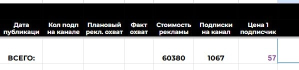 1067 подписчиков по 57 рублей в эзотерический канал, где конкуренция просто зашкаливает