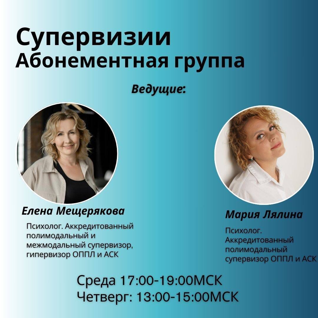 Полимодальная супервизия регулярная абонементная группа каждую среду в 17:00 и 18:00 по Москве и четверг в 13:00 и 14:00 по Москве. Можно участвовать в одном часе.