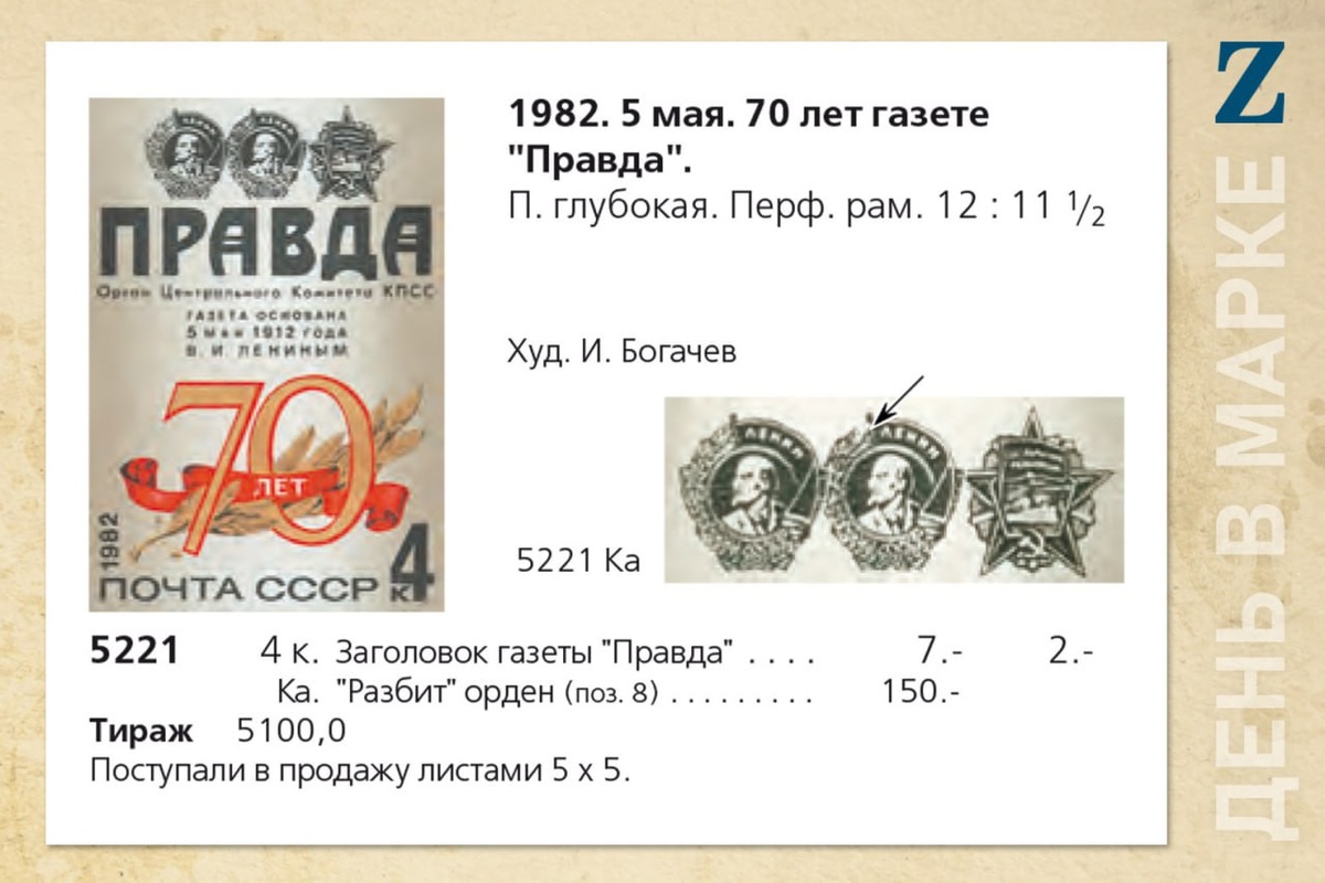 День в марке. 5 мая. Вышел первый номер газеты «Правда». Первая газета под названием «Правда» появилась в 1903 году как литературно-публицистический журнал. В 1912 году по инициативе В.И. Ленина было принято решение о выпуске массовой рабочей большевистской ежедневной газеты. Первый номер вышел 5 мая 1912 года — в день рождения Карла Маркса.
