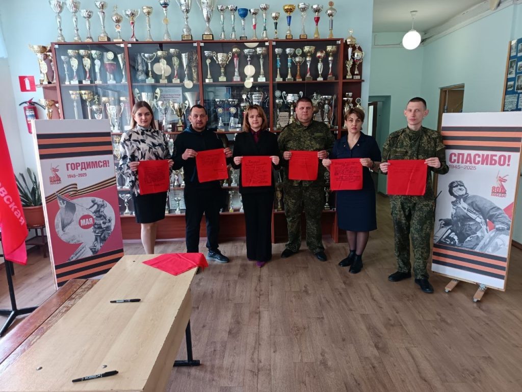 В честь празднования 80-летия Великой Победы, в рамках работы Штаба общественной поддержки Единой России в Ростовской области и проекта «Историческая память» партийцы и молодогвардейцы г.Пролетарска приняли активное участие в акции «Полотно Победы», организованной Движением Первых. Они написали имена своих героев на красных лоскутах ткани, после чего все они были собраны и сшиты в единое полотно. Участники акции «Полотно Победы» навсегда увековечили подвиги своих предков и сохранили память о каждом из героев, проявивших мужество, храбрость и отвагу в годы Великой Отечественной войны! М.Ковалева, исполнительный секретарь Пролетарского МО ВПП «Единая Россия»