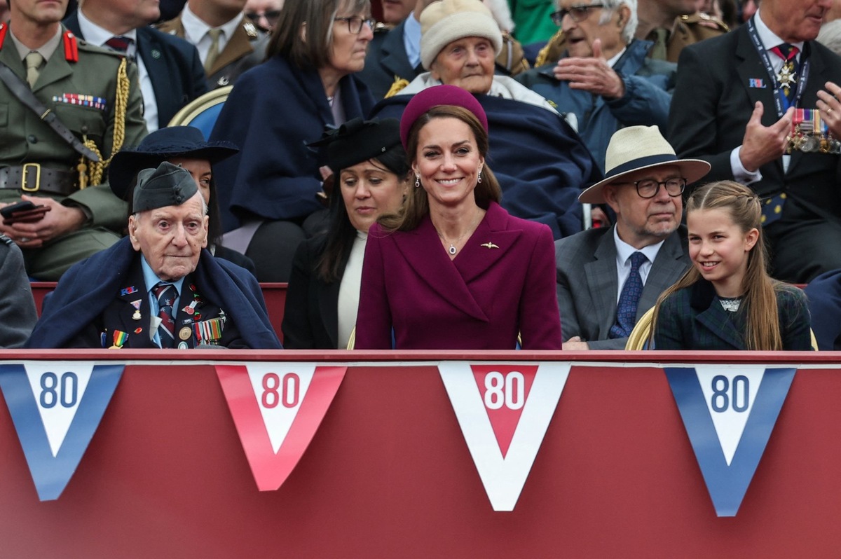Члены британской королевской семьи посетили военный парад в честь 80-летия окончания Второй мировой войны. Принц и принцесса Уэльские Уильям и Кэтрин, пропустившие пасхальную службу, в этот раз появились на публике вместе с тремя детьми. Миддлтон выглядела потрясающе в темно-фиолетовом платье-пальто Emilia Wickstead с поясом на талии и плиссированной юбкой, а завершала образ шляпка Sean Barrett с бантом. Ранее принцесса надевала этот же наряд в 2022 году на встречу с президентом ЮАР. Кейт повернулась спиной к камерам, чтобы пообщаться с ветеранами, и показала свои идеально уложенные локоны. Кэтрин не стала отказываться от украшений, но выбрала минималистичный комплект из сережек и ожерелья, браслет с жемчугом, а также золотую брошь. Уэльские активно приобщают детей к рабочим выходам. Напомним, у супругов трое детей: 11-летний принц Джордж, 10-летняя принцесса Шарлотта и 7-летний принц Луи.