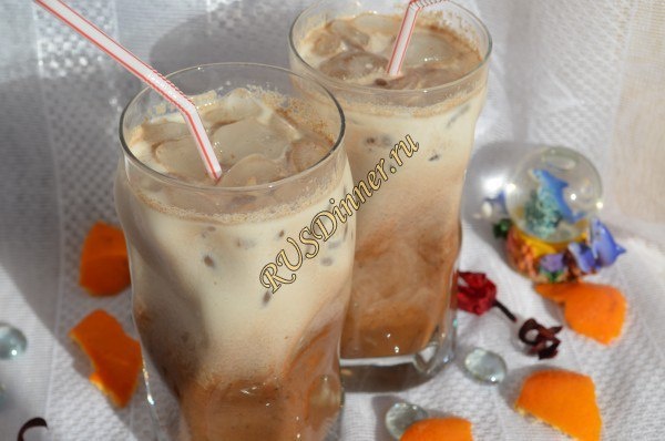 Мокко со льдом и мандарином Ингредиенты: Молоко - 400 мл. (2 ст.) Какао порошок - 50 гр. (0,3 ст.) Сахар - 50 гр. (0,3 ст.) Кофе быстрорастворимый - 20 гр. (1 ст. л.) Корица молотая - 5 гр. (0,5 ч. л.) Мускатный орех тертый - 3 гр. (0,3 ч. л.) Мандарины - 300 гр. (3 шт.) Сливки - 70 мл. (0,3 ст.) Источник: https://rusdinner.ru/page/mokko-so-ldom-i-mandarinom