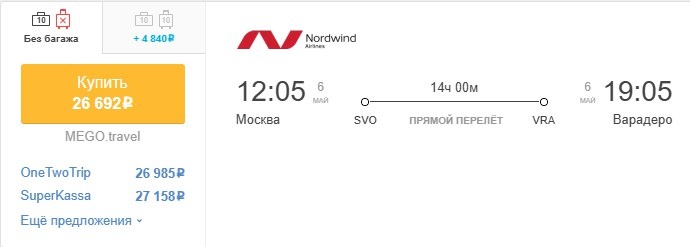 ✈️Москва - Варадеро (Куба), прямой рейс за 26700 рублей