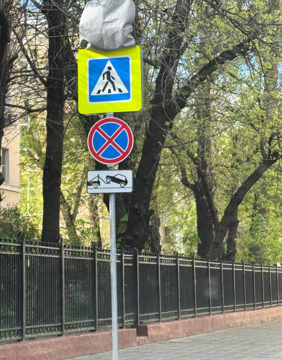 На Большой Бронной до сих пор после зимнего сезона не открыта велодорожка — знаки скрыты. Ну вот как на велосипед пересаживаться? Не по тротуарам же ездить