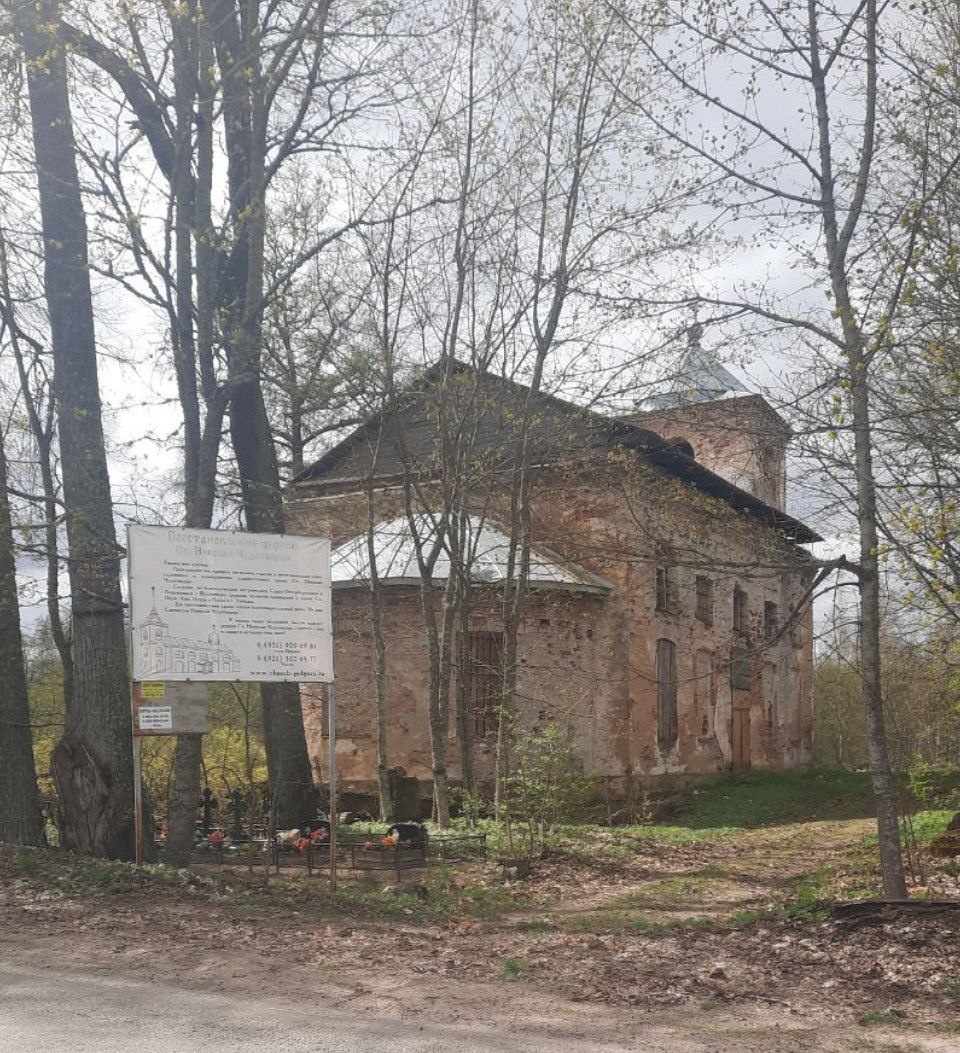 После того как проедешь всю страну, гнать последний участок по скоростной как-то неспортивно. Поэтому с радостью проехали по Ленинградском шоссе, по-другому взглянув на знакомые места. Раньше это всегда была дорога из пункта А в пункт Б. А сейчас профессионально выискивали интересное. Вот в Окуловке есть музей имени Миклухо-Маклая. Почему? А он уроженец этих мест. Или вот в проехали стенд: Здесь разбился на самолёте Алексей Маресьев. А мы столько раз за путешествие побывали в местах, связанных с ним... И поняли, что зуд наш уже не унять. Всегда любили путешествовать. Но теперь...В общем, зреет новый план. Очень скромный: объездить малоизвестные окрестности. Но зато легко осуществимый. Вот придём в себя и поедем. И только мы подумали, свернули на маленькую дорожку от Любани к даче, как в Пельгоре вот такие чудесные развалины церкви Николая Чудотворца 1800 года постройки, у которой были какие-то удивительные кресты из металлического обода, а внутри стеклянные... Это я к чему: не обяз