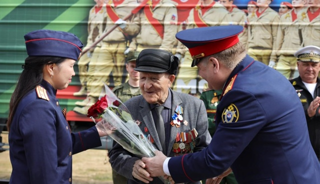 Герой России, старший лейтенант Владислав Николаевич Журавлев, а также представители органов исполнительной власти Республики Калмыкия. В своих выступлениях они подчеркнули важность сохранения исторической памяти, преемственности поколений и воспитания молодежи на примерах мужества и героизма защитников Отечества – как ветеранов Великой Отечественной войны, так и современных военнослужащих, выполняющих задачи в ходе спец