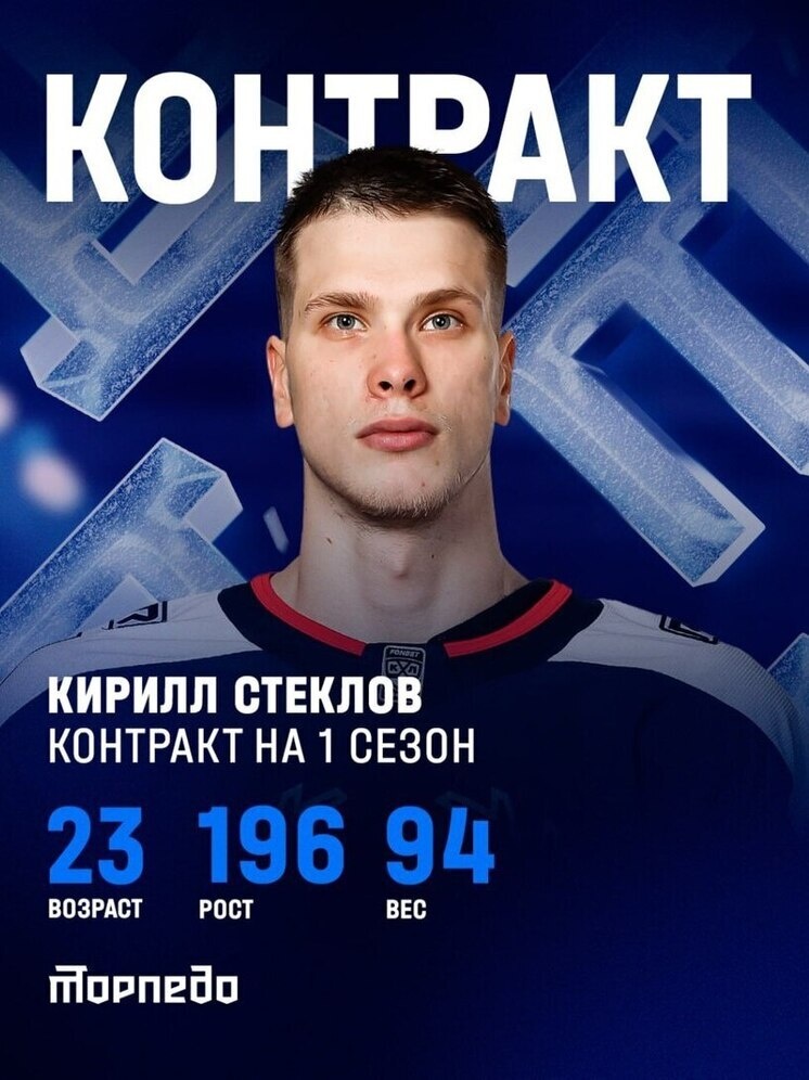 Руководство хоккейного клуба «Торпедо» продлило контракт с защитником Кириллом Стекловым еще на сезон. Новое соглашение носит двусторонний характер - игрок сможет защищать цвета как «основы», так и ХК «Торпедо-Горький» в будущем сезоне. В прошедшем спортивном сезоне Стеклов провел 16 матчей в КХЛ и 34 в ВХЛ, набрав 13 очков по системе «гол+пас» (2+11). Напомним, у многих игроков «Торпедо» заканчиваются соглашения 31.05.2025: Кирилл Трошкин; Иван Бочаров; Маркус Филлипс; Вячеслав Войнов; Китон Томпсон; Даниил Бокун; Михаил Орлов; Дмитрий Кагарлицкий; Бобби Линч; Данил Савунов; Игорь Ларионов-младший; Евгений Свечников; Владислав Кодола; Кирилл Свищёв; Кирилл Кирсанов; Артём Мисников. Ранее мы писали о том, что ХК «Торпедо» переподписал контракт с еще одним нападающим.