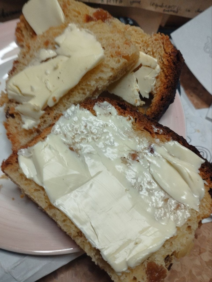 Эти прекрасные бутербродики с маслом - последний из оставшихся с Пасхи куличей
