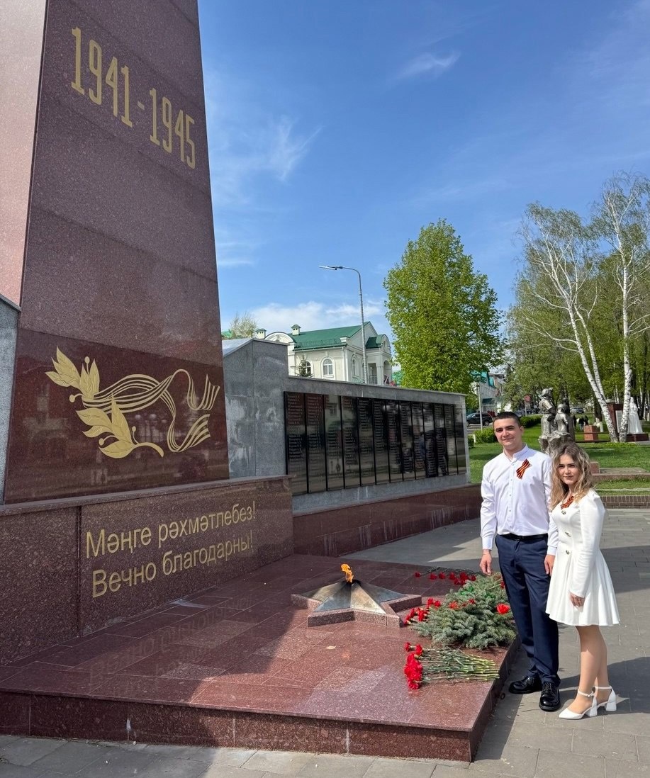 Молодожены из Мамадыша почтили память героев у Вечного огня в честь Дня Победы