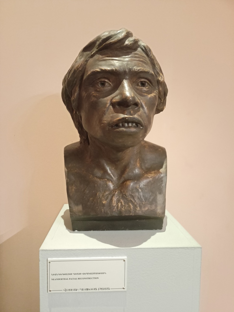 Это фото сделано вчера в Музее истории Армении в Ереване. Согласно подписи, бюст представляет собой реконструкцию внешности неандертальского человека. Нам показалось, что с этой реконструкцией что-то не так. Как думаете, что? Варианты: