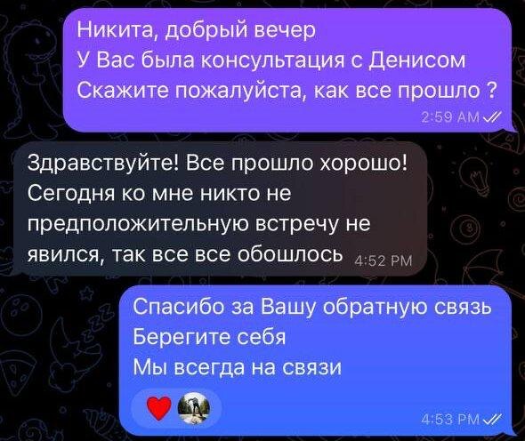🔥 ОТЗЫВЫ ОТ КЛИЕНТОВ 🔥 Спасибо каждому за тёплые слова и доверие! Последние недели выдались по-настоящему горячими. Что вы получаете на консультации: 🔻 Анализ вашей ситуации без "воды». 🔻 Конкретные решения, которые можно применить сразу после встречи. 🔻 Полная конфиденциальность вас и вашего кейса. Ваши отзывы — это не просто приятные слова. Это топливо, которое помогает нам работать ещё усерднее. 👉 По всем вопросам пишите мне: @denismayasov