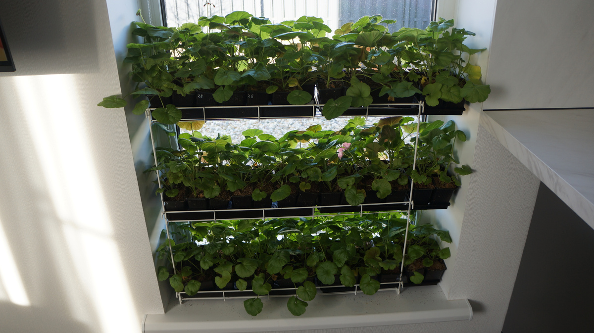 И если бы меня не заинтересовала довольно удачная конструкция стойки, я бы не узнала, что эту герань можно поливать почти раз в месяц. Более влаголюбивые жители рассадных стаканчиков требуют полива раз в 10 дней.