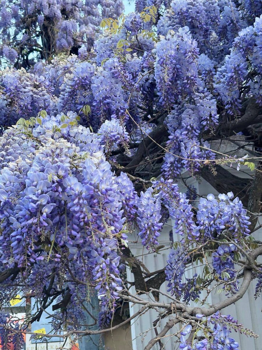 ГЛИЦИНИЯ И СИРЕНЬ 😍 В Крыму сейчас цветут глициния и сирень. Оба кустарника сиреневого цвета, бывают белые и розовые, но запах совершенно разный. Мои родители застали глицинию в Симеизе. Ей 100 лет и она великолепна. В нашем дворе я нюхаю сирень и гуляю по любимым улочкам. А еще моя мама отправила свою картину ,,Глициния,, в стиле крымского импрессионизм в Москву. Я ей очень горжусь.