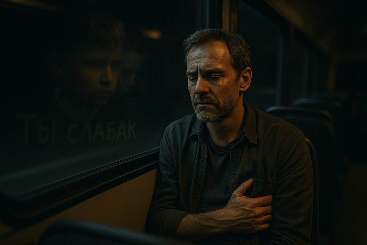 Из сериала «Точка, где я исчез» ⠀ Он выключил телефон. Открыл мессенджеры — и по одному вышел из всех. Как будто стирал себя из чужой памяти. ⠀ Куда ехать — не имело значения. Главное — подальше. Он сел в автобус, уткнулся в окно, и дорога потекла, как вода: деревни, поля, редкие остановки. ⠀ Тишина была не как отсутствие звуков. Она была, как выключенный кислород. Вспомнилось: первая пощёчина — в пять лет. «Ты что, нюни развесил? Ты слабак». Глаза жгло, губы дрожали — и он сдержал слёзы. Тогда он решил: быть сильным — это быть камнем. Без чувств, без жалоб. Без слабости. ⠀ Но камни не живут. Камни лежат. ⠀ Он вышел на безлюдной остановке и пошёл в сторону заброшенного домика, оставшегося от бабушки. Там пахло соснами и старым деревом. ⠀ На столе — блокнот, ручка. Он начал писать судорожно, будто выдирал это из горла: «Я устал быть героем. Я хочу быть живым». ⸻ ⠀ Внутреннее движение (Терапевтическое пространство для читателя) ⠀ Шаг 3. Когда стало слишком тихо Назови вслух то, о чём ты
