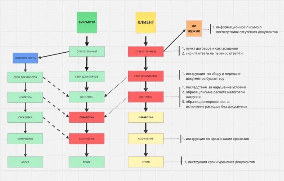 Если у меня в цене обслуживания заложена услуга «Учет по самозанятым», то кто отвечает за содержание договора и акта? Это вопрос участника курса «Стандарты БЧП». Смотрите, как он звучит в полном виде: «Мне интересно, как у вас цепочка с СМЗ выстроена. Договор и приложения - юрист, подписание, далее - объяснить подрядчику (кто объясняет: бух или юрист?), где в этой цепочке появляется бухгалтер (понятно, что оплата, далее на этапе сбора?). И какого рода контроль на нем. Оплата СМЗ только по документу? А по какому? Если предоплата, то какой документ - счет или заявка? И как это все в таблицу свести? На «Стандартах БЧП» мы даем новейшую, высокотехнологичную УДОЧКУ с бесконечным сроком службы. Немного рыбы тоже даем (более 20 шаблонов), но главное – удочка. Видите схему ответственности? Мы создали этот курс, чтобы вы видели этапы каждого процесса, открыли эту схему перед заказчиком и спросили: - в какой точке должна прийти бухгалтерия? - согласны ли платить за то, что я включаюсь на