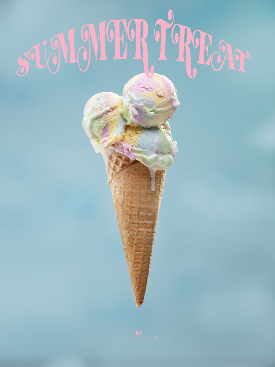 Я не гонюсь за количеством снимков, надеясь, что среди них найдётся удачный. Моя задача — создать один кадр, идеально соответствующий ожиданиям клиента. Фотосъёмка мороженого в рожке в студии Славы Позднякова. Несколько советов. Выберите хорошо освещённое место. Естественный свет из окна может быть отличным вариантом, но убедитесь, что нет лишних теней. Для более яркого и чёткого изображения можно использовать дополнительный источник света. Подумайте о композиции кадра. Можно использовать правило третей, чтобы расположить мороженое в рожке в одной из третих частей кадра. Экспериментируйте с разными углами съёмки. Например, можно снять мороженое сверху, чтобы показать его в рожке, или снять с боку, чтобы добавить глубину композиции. Подберите фон, который не будет отвлекать внимание от мороженого. Можно также добавить элементы, которые подчеркнут вкус мороженого, например, свежие ягоды или фрукты на фоне. Обратите внимание на детали, такие как текстура мороженого, форма рожка и капли с