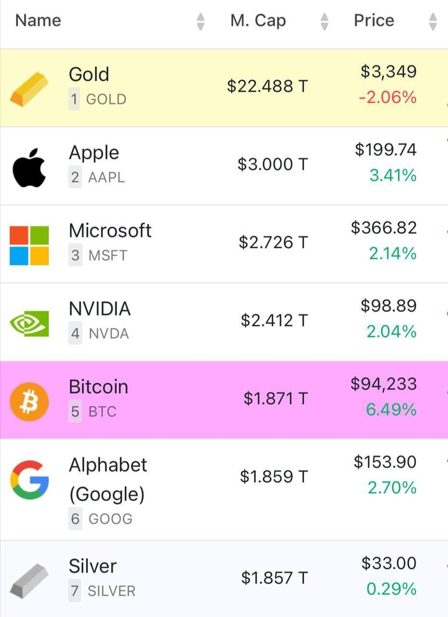 #BTC Bitcoin - 5 место по капитализации. 🔮Полагаю, что уже в этом сезоне очень-очень он станет номер 2 и обгонит #AAPL Apple 🍎 За золотом придётся порасти ещё, но и оно падёт на нашем веку. #крипта с нами 💯 Самое ценное 💯 / Индекс силы 👍 / Лучшее предложение🎩