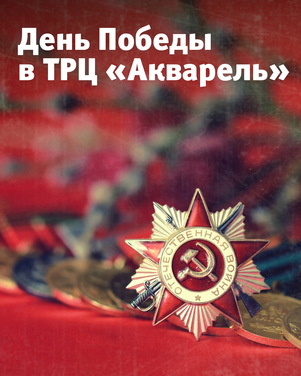 Конечно, не обойдёмся и без музыкального сопровождения. Весь день в нашем торговом центре будут звучать любимые военные песни. До встречи в ТРЦ «Акварель» 9 мая!