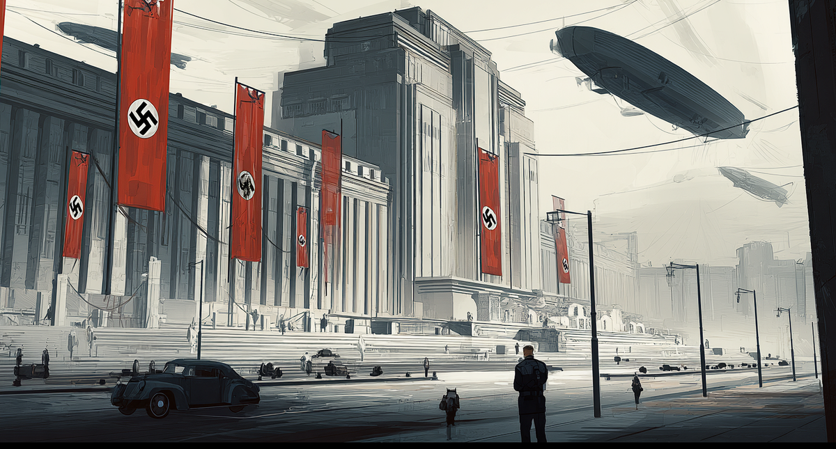Транспорт был в основном электрическим – бесшумные, обтекаемые автомобили государственной марки «Adler» скользили по выделенным полосам. Над головой время от времени проплывали огромные дирижабли-цеппелины с развевающимися знаменами Рейха – не столько транспорт, сколько инструмент пропаганды и наблюдения. Повсюду были камеры. Неприметные, встроенные в стены, фонарные столбы, даже в декоративные элементы зданий. И маленькие, юркие дроны, похожие на металлических насекомых, бесшумно барражировали над проспектами. Тотальный контроль.