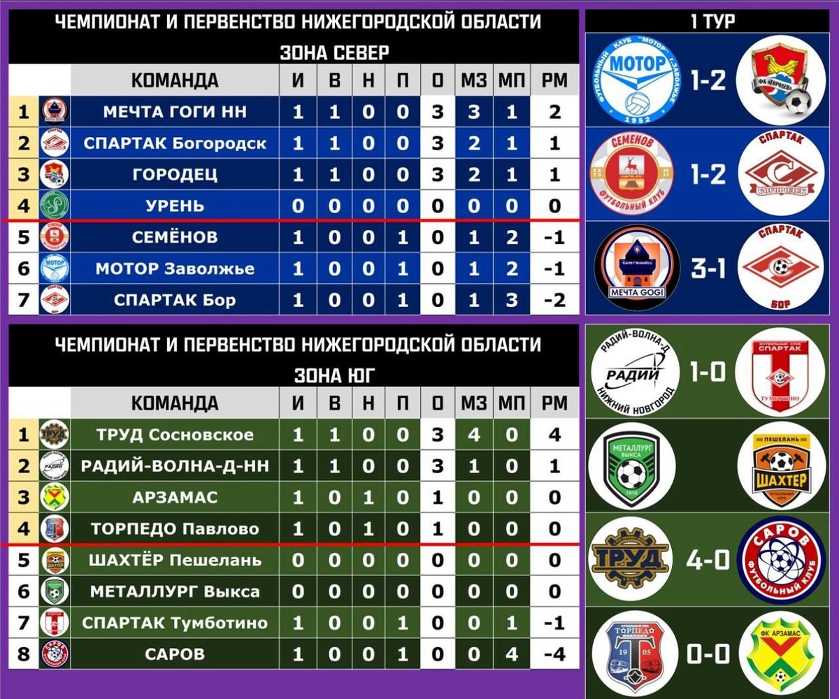⚽Итоги первого тура чемпионата Нижегородской области по футболу 2025