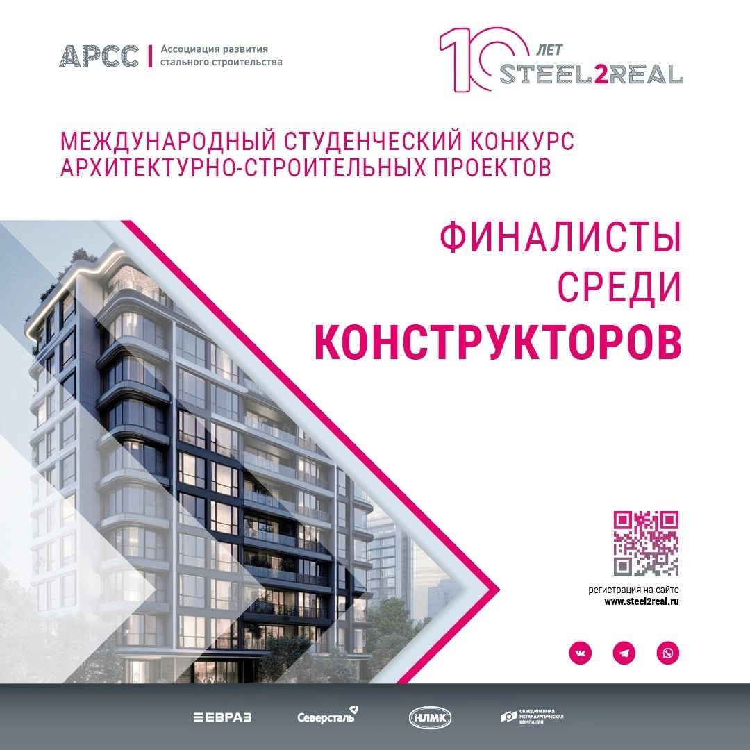 🗣Завершился конструкторский этап десятого Международного студенческого конкурса архитектурно-строительных проектов Steel2Real'25. 📌Профессиональное жюри определило финалистов среди конструкторов, которые защитят свои проекты многоэтажного жилого дома башенного типа на стальном каркасе и сразятся за главный приз в заключительном этапе. 📍В финал среди конструкторов вышли 📍Финалистами архитектурной номинации стали 🌹Финалисты Steel2Real'25 среди архитекторов и конструкторов встретятся на заключительном этапе в Москве. 📌28 мая 2025 года они защитят свои проекты перед жюри, которое определит победителей и призеров. Подробнее