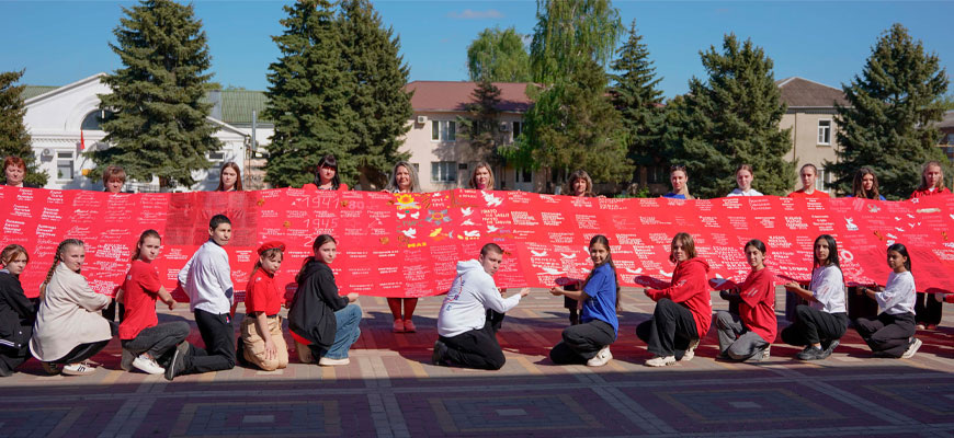 Районная акция «Полотно Победы» — символ патриотической памяти и благодарности героям Великой Отечественной войны передан на хранение в межпоселенческую библиотеку, где теперь каждый житель и гость района сможет увидеть этот уникальный проект, созданный руками детей и молодежи со всего района. С февраля по май 2025 года юные жители Целинского района создавали элементы «Полотна Победы» — красные лоскуты ткани размером 30×30 см с именами и рассказами о героях войны: бойцах, тружениках тыла, детях войны. Каждый фрагмент стал частью общей мозаики памяти и передавал личную или семейную историю. Собранные лоскуты были объединены в единое большое полотно, ставшее символом благодарности потомков за мирное небо над головой. Эта инициатива не только объединила участников со всего района, но и подчеркнула важность преемственности поколений, уважения к историческому наследию и активной роли молодежи в сохранении памяти о великом подвиге народа.