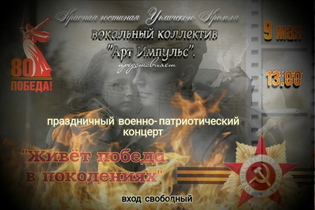 Живет победа в поколеньях. Мелодии Великой Победы звучат, как эхо героических битв, воскрешают образы военных лет. Символические композиции, соединяющие поколения и подчеркивающие единство нации исполнят для вас солисты угличского вокального коллектива «Арт Импульс» 9 мая в концертной программе, посвященной 80-летию Победы: Анастасия Меркулова, Екатерина и Игорь Махаури, Ольга Бондаренко, Анна Лысых и Ольга Жильцова Приходите погрузиться в атмосферу памяти и гордости, где каждая нота – мостик между прошлым и настоящим! 💗Начало концерта «Память пылающих лет» в 13:00 💗Место проведения: Красная гостиная бывшей Городской Думы (Кремль, 1) 💗Вход свободный #угличскиймузей #угличскийкремль #9мая #ДеньПобеды #концерт #Ярославскаяобласть #углич #золотоекольцо