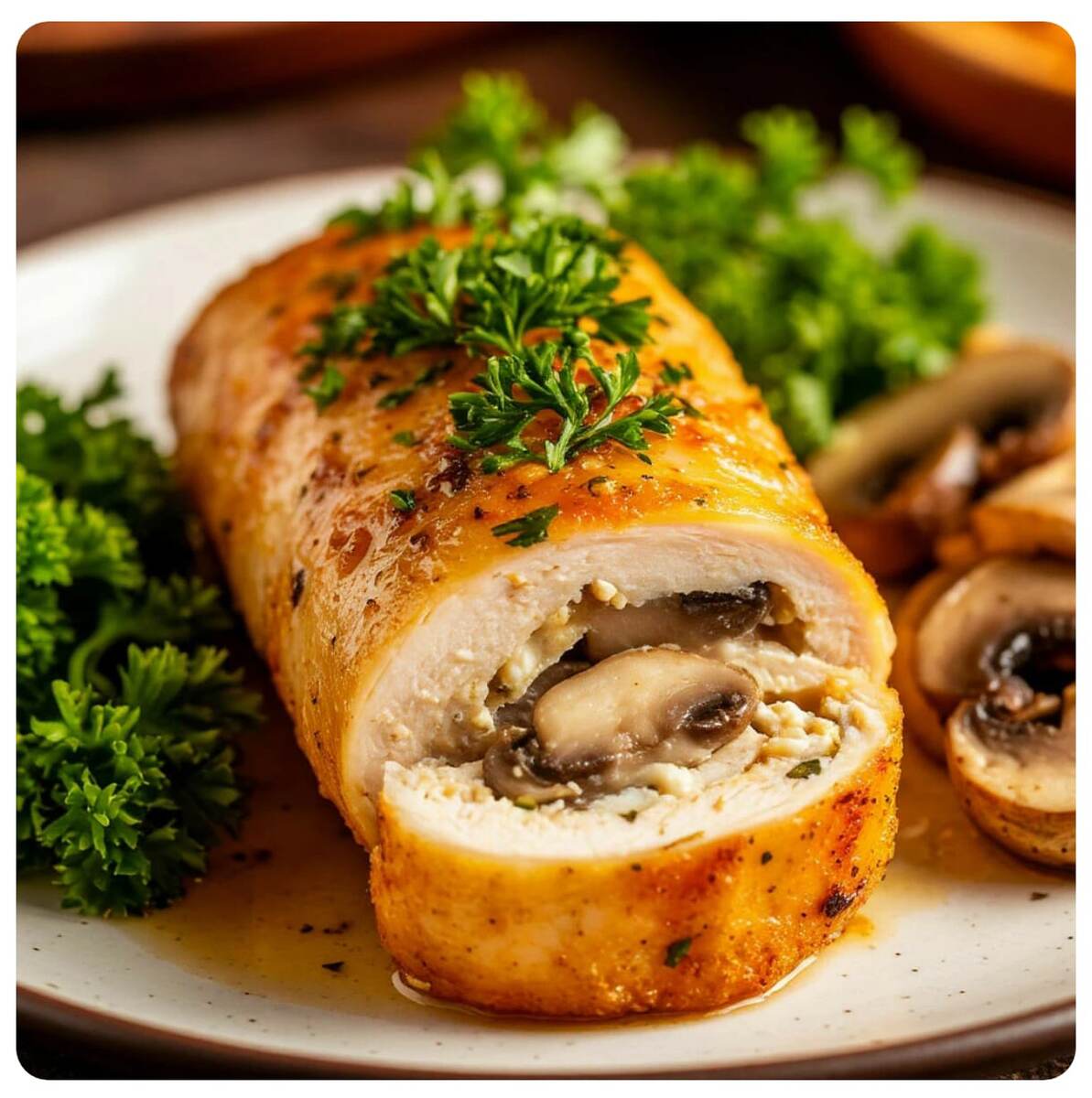 Этот рецепт – беспроигрышный вариант для любого случая. Сочетание нежного куриного филе, ароматных грибов и тягучего сыра никого не оставит равнодушным.