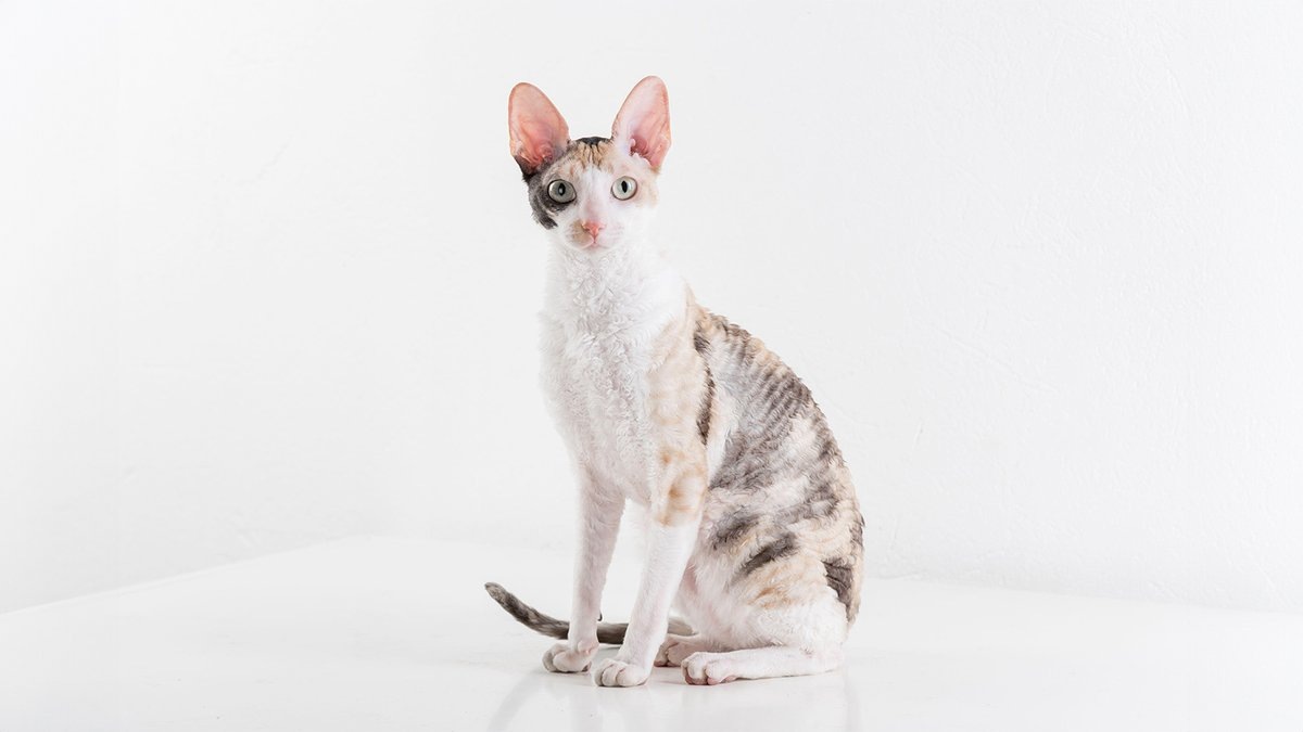 Одна из самых уникальных пород по внешности. Корниш-рексы отличаются волнистой, мягкой шерстью и телом, напоминающим балетного танцора: узкое, гибкое, с длинными лапами и изогнутой спиной. Эти лапы — их гордость и опора, они невероятно ловки, быстры и неутомимы в игре.