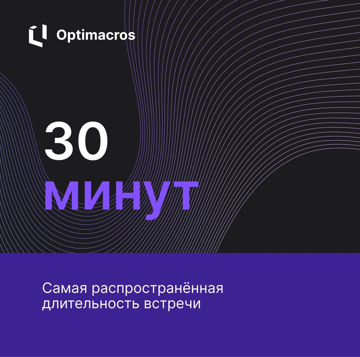 📊 Самая распространённая длительность встречи — 30 минут. В среднем столько длится половина встреч в каждой организации.