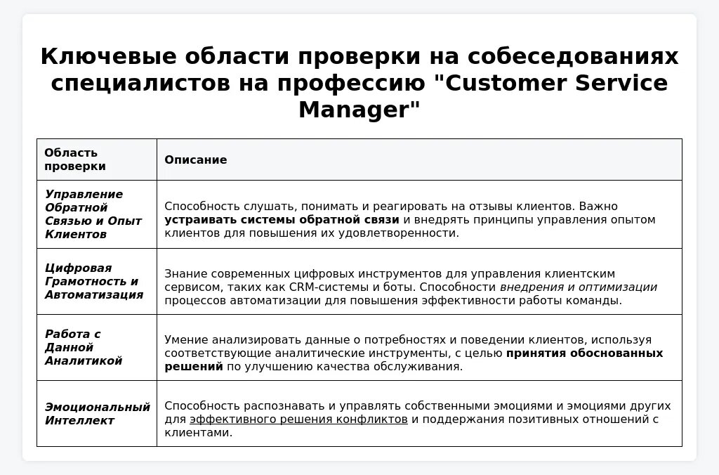В 2025 году на рынке труда для менеджеров по работе с клиентами обращается внимание на детали, которые могут сделать взаимодействие с клиентами более качественным и продуктивным. Будучи нацелены на успех, работодатели ищут следующих компетенций: