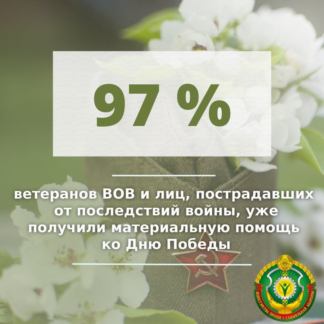 🏅 Матпомощь ко Дню Победы получили порядка 97% ветеранов и граждан, пострадавших от последствий войны