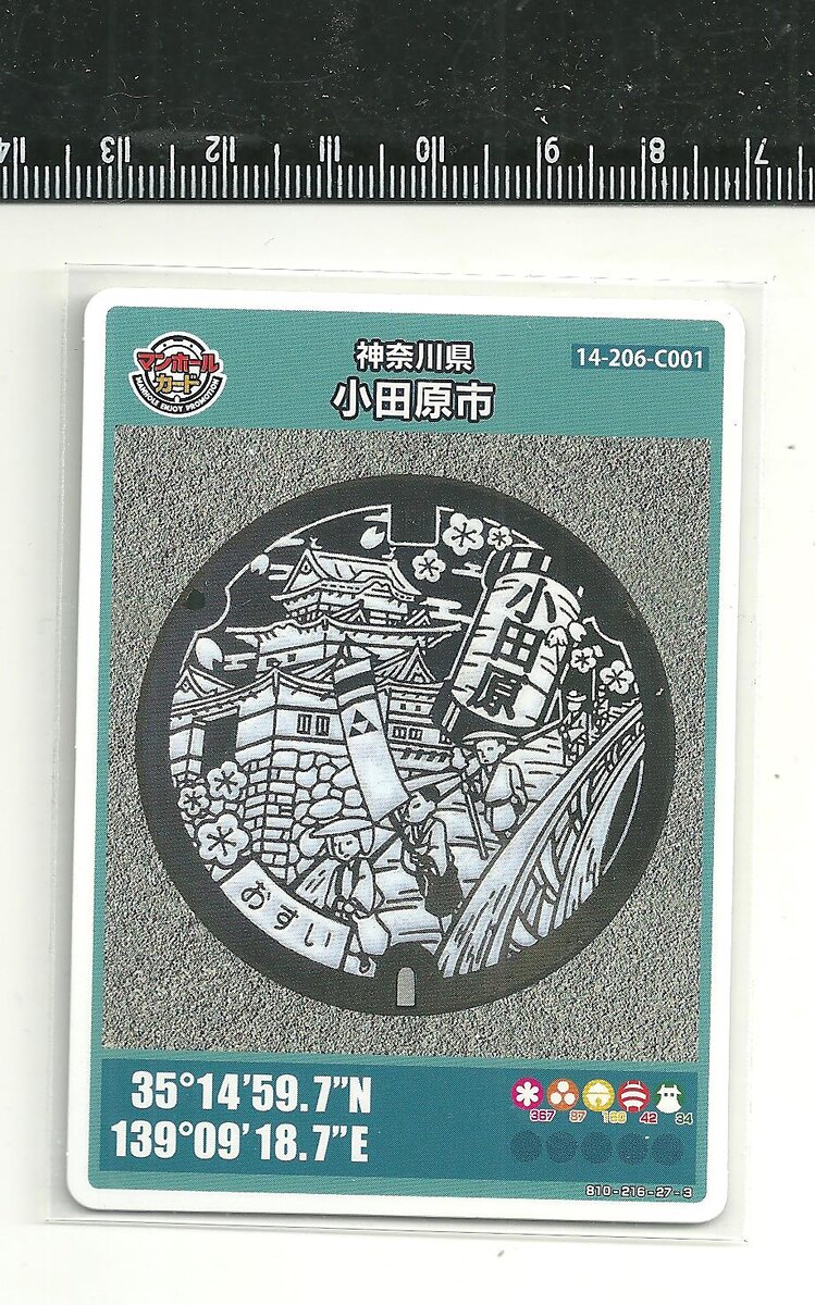 Сегодня мы отправляемся в городок Одавара ( 小田原市 ) префектуры Канагава, который расположен на берегу моря. Говорят, что море там до сих пор такое чистое, что там находится излюбленное место обитания морских черепах..., что , несомненно, привлекает множество туристов, в том числе дайверов .... Меня же привели сюда географические координаты с коллекционной карточки под номером 31 ... Этот достопримечательный колодезный люк находится на территории исторического парка города Одавара. Издревле город был важнейшим транспортным узлом восточной Японии. С 1603 по 1898 годы - это крупная почтовая станция. В современной истории местность эта получила статус города в 1940 году. Это один из городов Японии, который подвергся бомбардировкам союзников во Второй мировой войне... Одной из главных достопримечательностей можно считать - замок - крепость, построенный в 1447 году. В дальнейшем несколько раз перестраивался и реставрировался. С начала 1950 - х активно ведется реставрация замкового комплекс