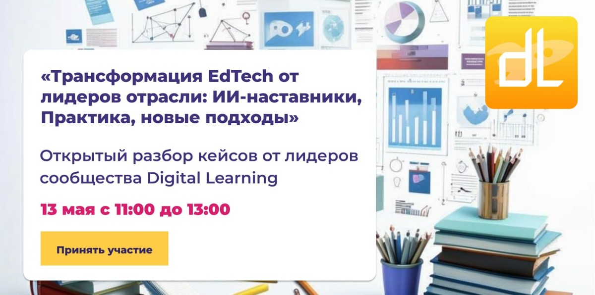 Как ИИ-наставники помогли завоевать рынок онлайн-подготовки к ЕГЭ и превратили зумеров в фанатов бренда? Как превратит курс в первую работу? 13 мая в 11:00 на эти вопросы ответят победители Премии Digital Learning и лидеры отрасли! Только лучшие кейсы и практики современного обучения! ✅ 13 мая 2025 года в 11:00 (мск) приглашаем вас на онлайн-встречу «Трансформация EdTech от лидеров отрасли: ИИ-наставники, Практика, новые подходы»: - «Трансформация EdTech: курс как первая работа – к результату через реальные задачи от ведущих работодателей» (2 место на Премии Digital Learning 2024 в номинации онлайн-курсы), спикер - Сергей Попов, директор разработки образовательного продукта холдинга Skillbox - «Как завоевать рынок онлайн подготовки ЕГЭ и превратить зумеров в фанатов вашего бренда» (2 место на Премии Digital Learning 2024 в номинации образовательные экосистемы), спикер — Синцова Анастасия, коммерческий директор ЕГЭLAND - Секретный спикер Модератор: Павел Безяев, лидер сообщества