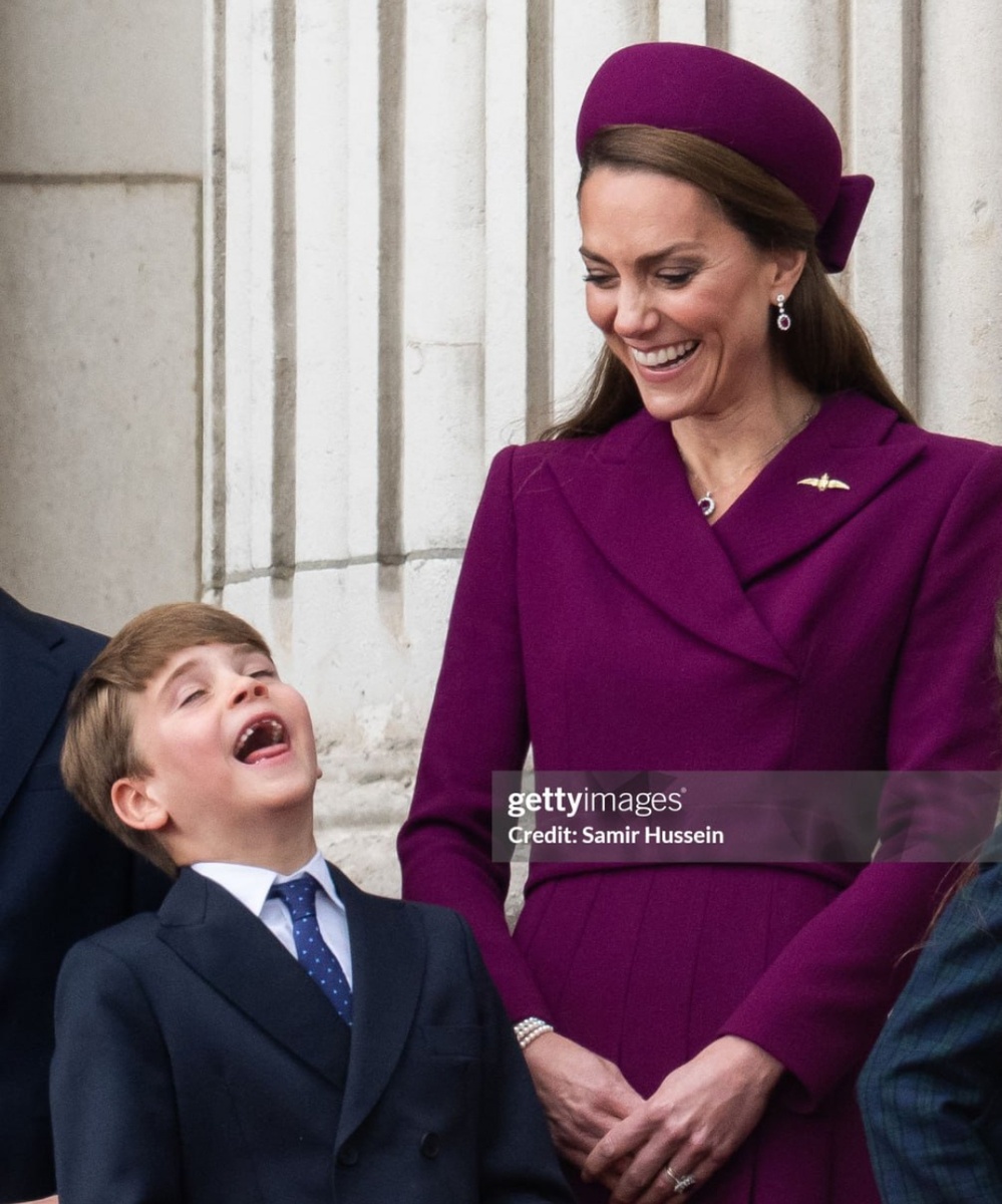 Всего через несколько дней после празднования годовщины свадьбы у принца и принцессы Уэльских появилась ещё одна причина выйти в свет, теперь уже со своими королевскими родственниками — королём Карлом и королевой Камиллой. Кейт и Уильям приняли участие в семейном воссоединении в честь 80-й годовщины Дня Победы в Европе 8 мая вместе с принцессой Анной и герцогиней Софи. Как обычно, королевская чета выглядела гламурно, но все взгляды были прикованы к Кейт, которая редко появлялась на крупных королевских мероприятиях с тех пор, как в 2024 году завершила курс профилактической химиотерапии. Принцесса выглядела потрясающе в тёмно-фиолетовом платье-пальто от Эмилии Уикстед с поясом и плиссированной юбкой. Она дополнила свой образ шляпой от Шона Барретта с бантом и туфлями от Ральфа Лорена. Ранее она надевала этот наряд в 2022 году на встречу с президентом ЮАР Сирилом Рамафосой. Дополнив образ идеальными аксессуарами, она надела рубиновые серьги-подвески и прикрепила к лацкану золотую бро