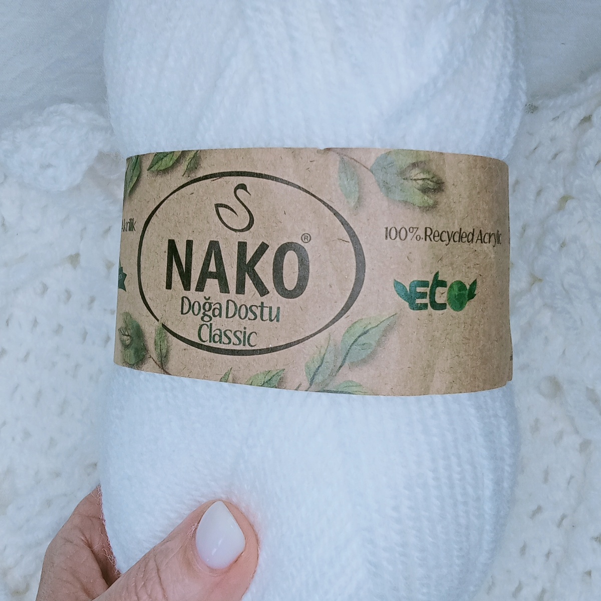 На этикетке с пометкой "eco" написано "экологическая шерсть", "100% переработанный акрил". Всё это означает лишь одно: когда-то этот моточек был частью пластиковых бутылок и другого пластикового мусора. Лично у меня отношение неоднозначное. 🌿С одной стороны, пластик уже заполонил планету, и каждый день мы его выбрасываем ужас сколько. Такова жизнь. Но и обойтись без пластика сложно, если только переехать в деревню и подальше от цивилизации. Но даже тот же чайный пакетик – это пластик. Вторичное использование пластика – это, несомненно, вклад в дело природы. Из переработанного пластика и одежду шьют, и обувь. Вот и для ручного вязания пряжу производят. И к слову, пряжа очень даже неплохая. Качественный, не скрипучий акрил. Если бы не этикетка, то и не подумала бы что что-то тут не так. 🌿 С другой стороны, этот тренд мне не нравится. Такое ощущение, что человечество оправдывает сверх масштабное использование пластика, прикрываясь модой на переработку. А по сути ведь переработанны