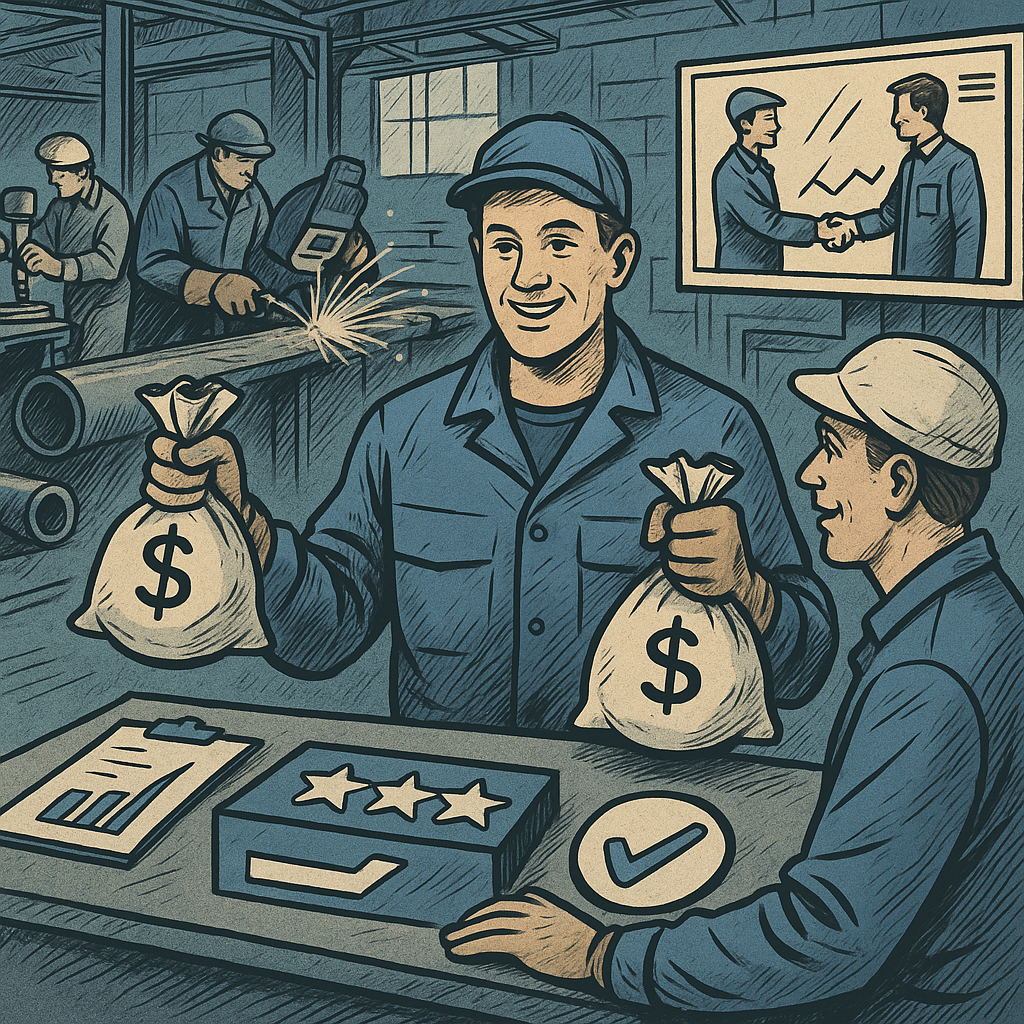 — Мы тут не только за количество платим. Если ты сделал быстро, но клиент потом вернул — нам всем минус. А если успел в срок, без брака, ещё и помог соседу — получишь больше. У нас за это — премия.