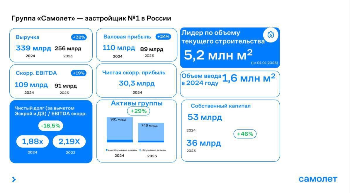 Много слухов вокруг этого застройщика, но я люблю цифры и вот, что они говорят: В 2024 году у "Самолета" всё было хорошо: • Компания заработала больше денег (выручка выросла). • При этом смогла сохранить хорошую прибыль с каждой продажи (рентабельность осталась высокой, несмотря на подорожание всего). • Компания стала меньше тратить на управление и офис. • Из-за высоких ставок по кредитам прибыль немного уменьшилась. • Долгов у компании стало меньше. В планах на 2025 год: • Продолжать продавать квартиры в разных регионах. • Сосредоточиться на строительстве в самых выгодных местах. • Продавать землю, чтобы быстрее получать деньги. • Когда ставки по кредитам снизятся, получать еще больше прибыли. • Продолжать уменьшать долги. В общем, "Самолет" летит нормально и планирует лететь еще лучше.