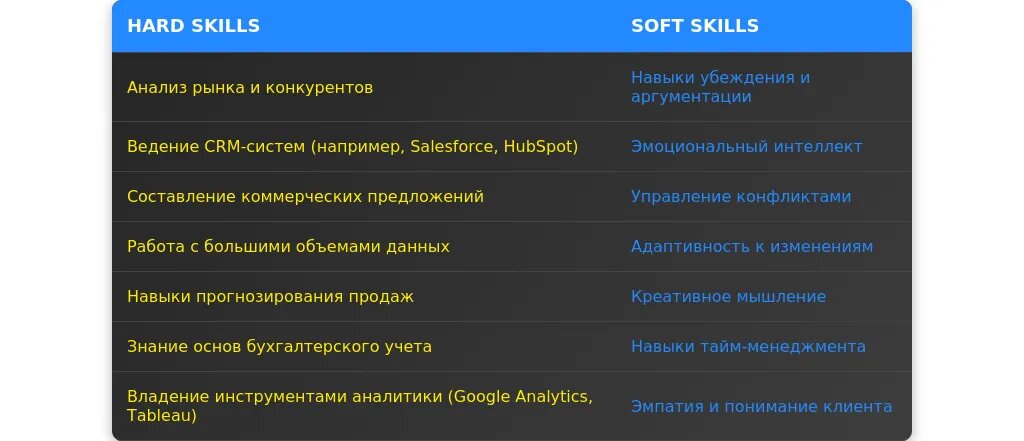 После адаптации: "Навыки B2B-продаж, опыт работы с CRM Salesforce, знание рынка технологий."
