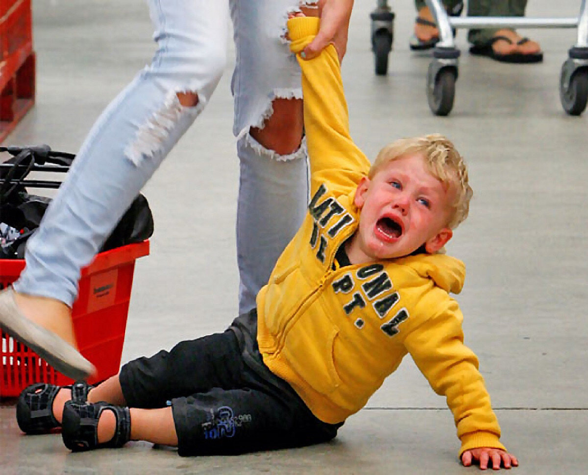 В магазине на полу лежал мальчик лет пяти, стучал ногами по полу, свитер задрался, обнажив белый животик малыша. Руками он отпихивал родителей. Мама и папа пытались его уговорить, мама закрывала свитером голый живот, а мальчик опять его оголял. Такие ситуации нередки в общественных местах, и чаще всего дети «перерастают» такое поведение.