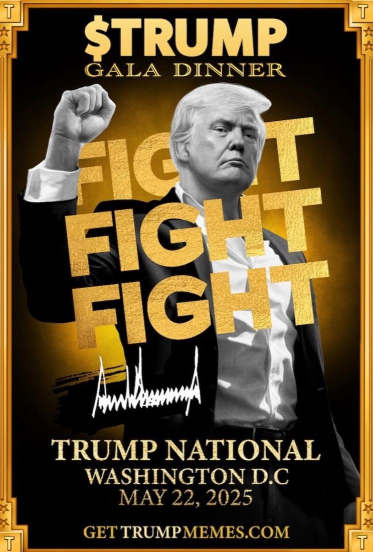 Трамп выложил анонс GALA ужина с ним, который пройдет 22 мая. 😋 Топ-холдеры токена смогут поужинать с президентом США. Монета TRUMP отреагировала на новость небольшим ростом.