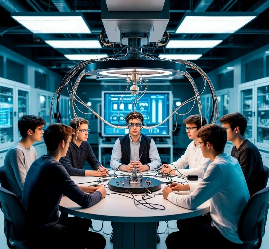 Вова Васильев и Саня Смирнов, друзья и одновременно студенты физико-стратегического факультета МГУ, сидели рядом на последней лекции по коллективному разуму. Пожилой препод, профессор, стоял за кафедрой и нудным, гундосым голосом зачитывал информацию: - Сдавать зачет вы будете всей группой, двадцать человек разом на приборе "группомозг-2101". Для зачета нужно вложить в решение общей задачи минимум два процента объема полезной информации. Кто вкладывает меньше - будет исключен. Пересдача не предусмотрена... В учебе Вова был лучшим на потоке. Профессор, да и вся кафедра возлагали на него большие надежды в будущем. Он не парился насчет зачета, он знал, что легко его получит, а вот Саня сидел и нервно теребил ухо. У него с "коллективкой" были проблемы. В течение семестра этот чертов прибор никак не хотел учитывать его вклад в решение задач, хотя он скрипел мозгами изо всех сил. Шансов было мало. Вот он теперь и дергал себя за уши, а они уже покраснели как помидоры. Саня с надеждой посмо