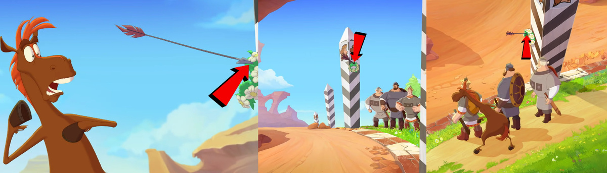 Мультфильм "Конь Юлий и большие скачки" полон ярких сцен и забавных моментов. Однако, как это часто бывает в анимации, некоторые детали остаются незаметными для большинства зрителей, но под наблюдательным взглядом они начинают смотреться несколько нелепо. Мы подготовили для вас подборку самых ярких киноляпов, которые можно заметить при внимательном просмотре. В одном из моментов стрела срывает венок с головы героини — и всё бы ничего, но при внимательном просмотре становится ясно: в кадре сначала стрела оказывается под венком, затем — внутри самого венка, а потом снова — под венком. К тому же наконечник стрелы то появляется, то исчезает. При смене ракурса расстояние между следом от колеса и границей дороги постоянно меняется. То оно небольшое, то вдруг увеличивается. Нога персонажа оказываются прямо на цветке, уже якобы за пределами, на территории наших богатырей. А в другом кадре нога уже не на цветке, да и вообще не попала на границу. В одном кадре чётко видно окно на стене, но стоит