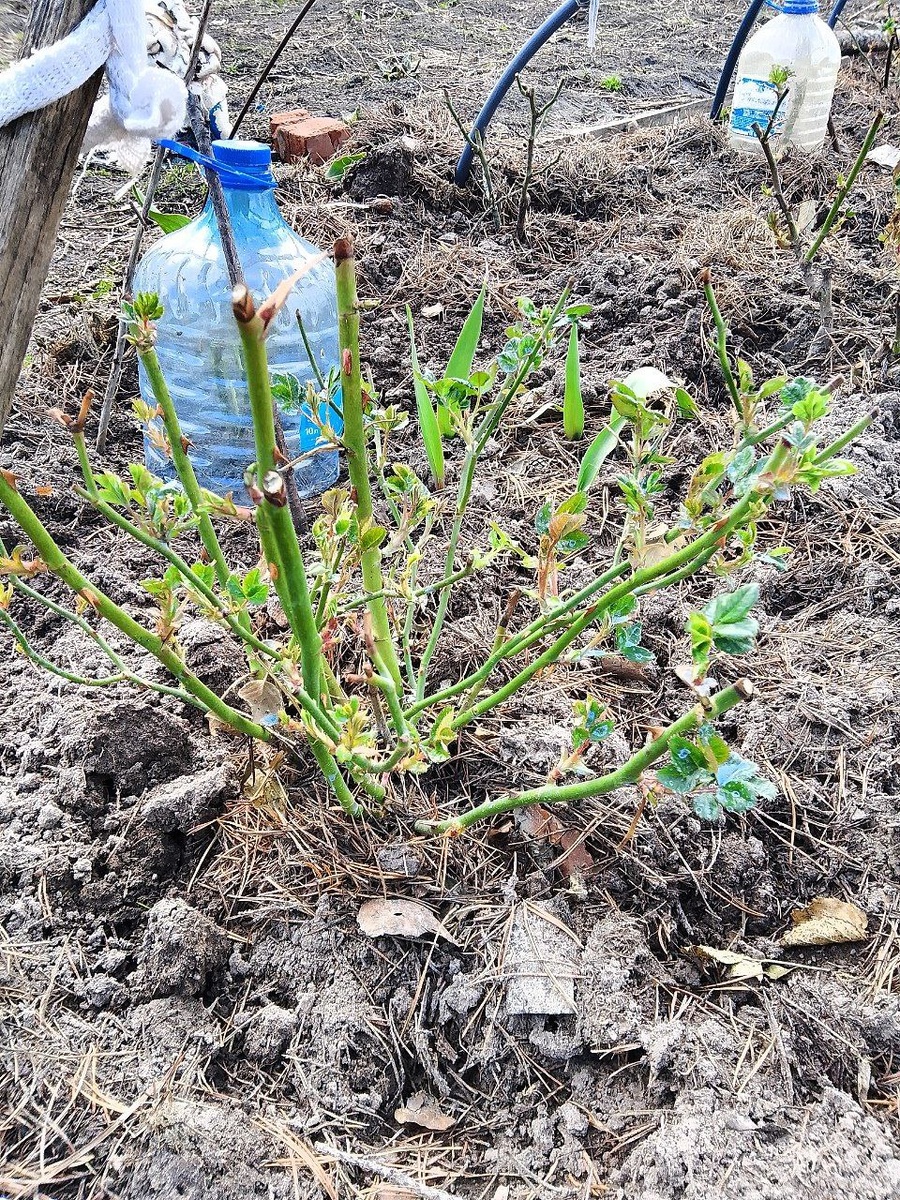 Розы перезимовали хорошо. Убрали укрытие, подрезали поврежденные стебли
