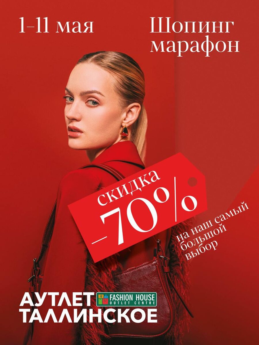 ШОПИНГ МАРАФОН в Аутлете Таллинское – скидки до -70%! 💥 Майские праздники - это идеальное время для обновления гардероба! С 1 по 11 мая вас ждут огромные скидки – до 70% на мировые бренды: Marc O'Polo, U.S. Polo Assn, Lacoste, Benetton, Guess, Sneaker Box и многие другие по настоящим outlet-ценам! 🎁 А еще у вас есть возможность поучаствовать в розыгрыше призов при покупке от 3000 рублей! 👉 Подробности – в Telegram-канале Аутлета. 📍 Красносельское шоссе, 59 (пересечение КАД с Таллинским шоссе). 💬 Не упустите шанс обновить гардероб с максимальной выгодой! Реклама. ООО «Фэшн Хаус СПБ» ИНН 7842459430 erid:2VtzqxAw5kX