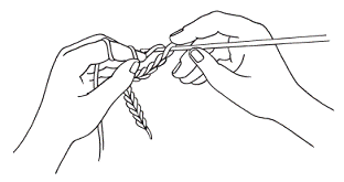 - 1 ряд: 3 ВП подъема (считаются как первый ССН), ССН в каждую петлю цепочки до конца ряда.