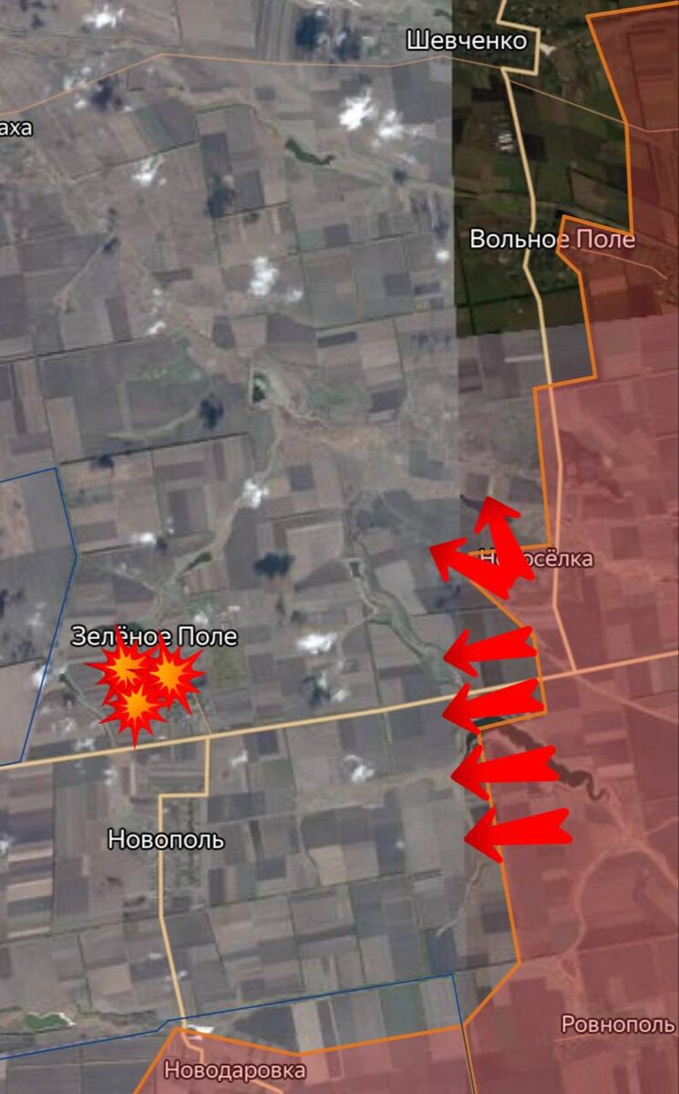 🪂 Великоновосёловское направление. Западнее от Великой Новоселки в направлении Днепропетровской и Запорожской областей наши войска активно наступают. Вольное Поле, Зеленое Поле и у Ровнополя расширяем контроль территории. Южнее Новоселки продвинулись широким флангом в 5 км на глубину 1,5 км. Севернее Новоселки также расширили контроль территории, помимо этого по вражеским ПВД в Зеленом Поле отработала наша авиация. Дневник Десантника 🇷🇺 Подписаться
